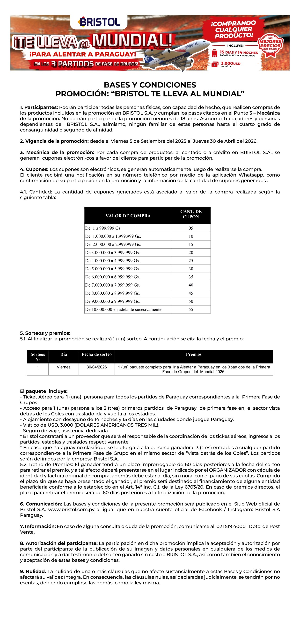• Bases y Condiciones "Bristol te lleva al Mundial"