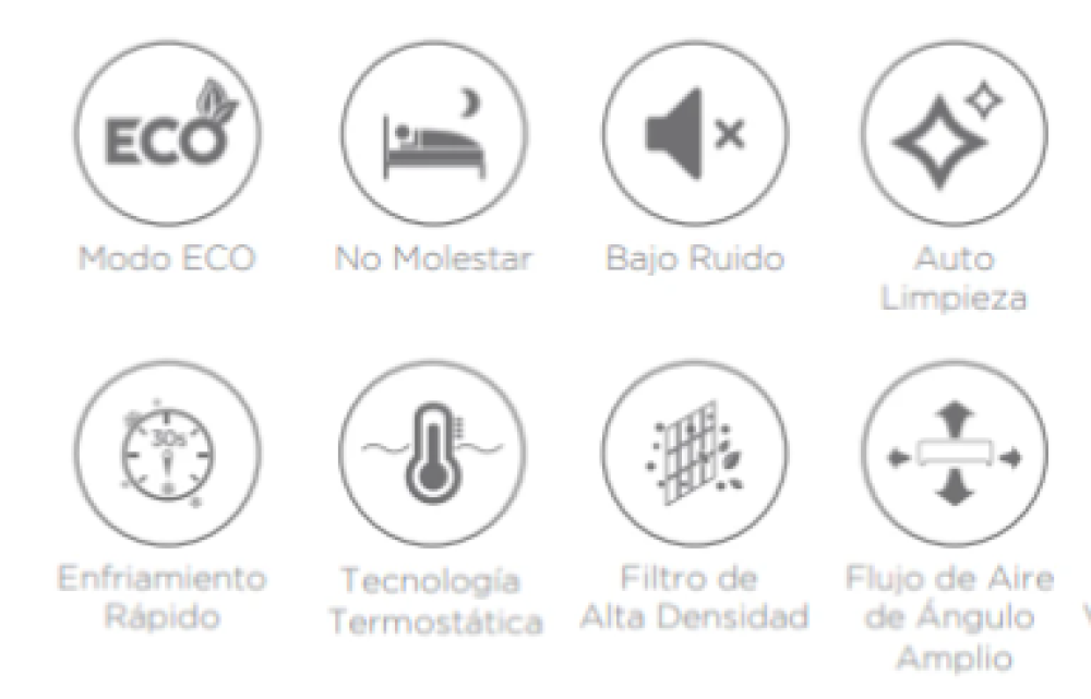 - Modo de deshumidificación: Selecciona automáticamente un modo de enfriamiento basado en la diferencia entre la temperatura ajustada y la temperatura ambiente real.
