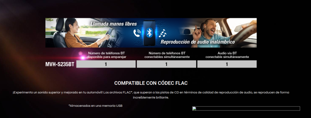 El nuevo MVH-S235BT cuenta con tecnología inalámbrica Bluetooth incorporada para una función manos libres más fácil y segura de operar mientras conduces. Además, podrás disfrutar del control y la transmisión de audio inalámbricos.