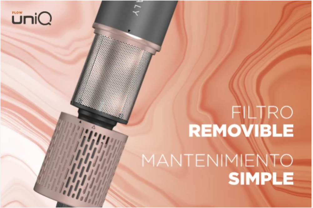 Más estilos, un solo dispositivo El UniQ Flow 9 en 1 permite crear diferentes looks gracias a sus cabezales intercambiables, facilitando el secado, el alisado, las ondas, los rizos y el volumen en un solo equipo. | ![]() |