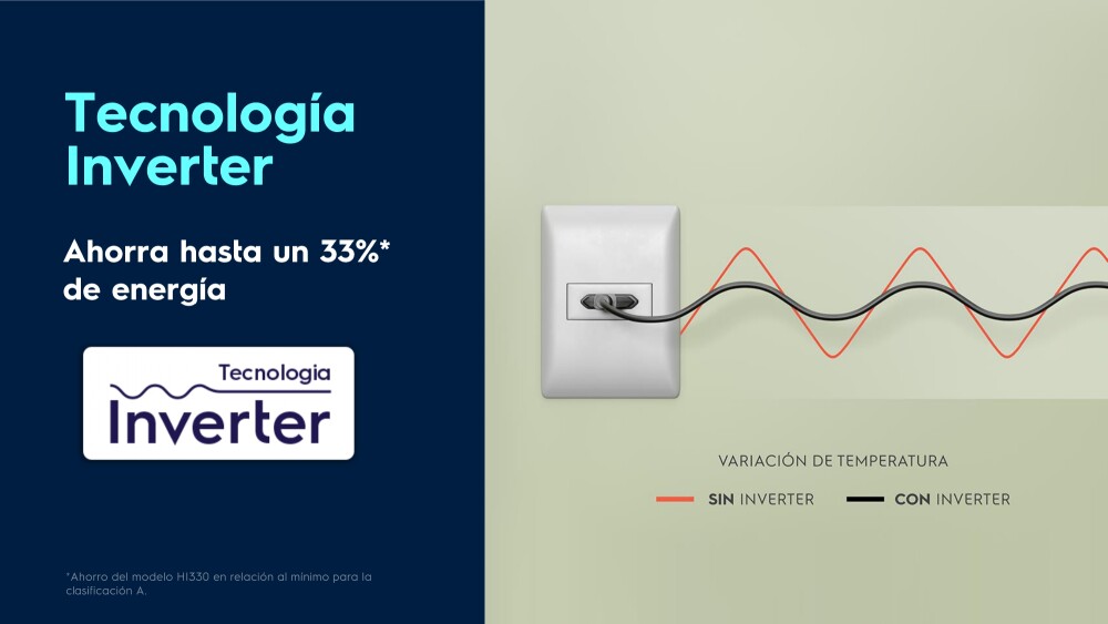 - Tecnología Inverter: Ahorra hasta un 33%* de energía.