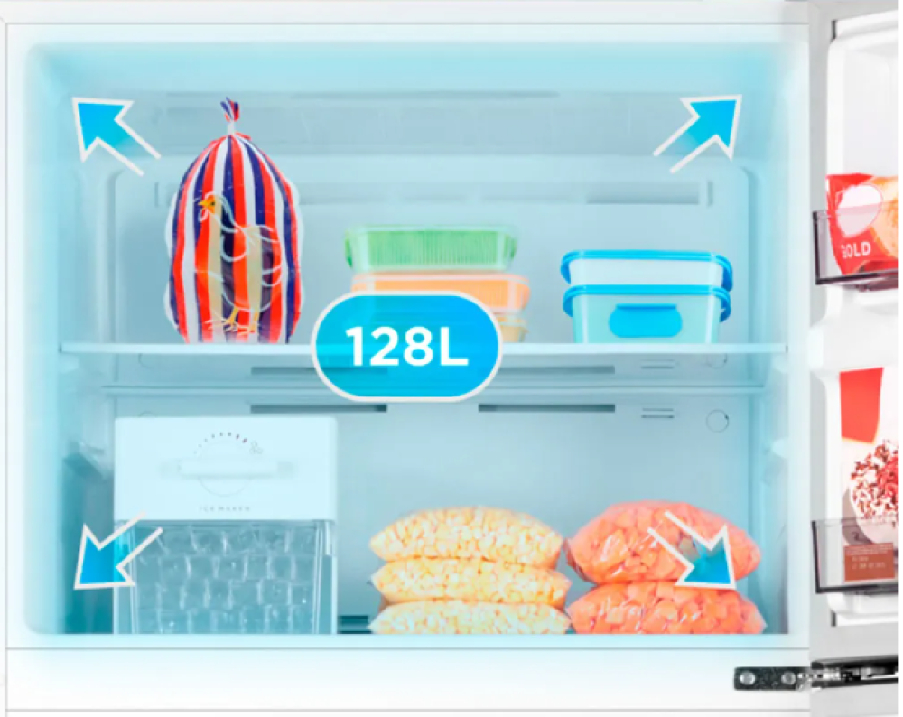 - Capacidad de Almacenamiento de Alimentos Congelados: 128L
