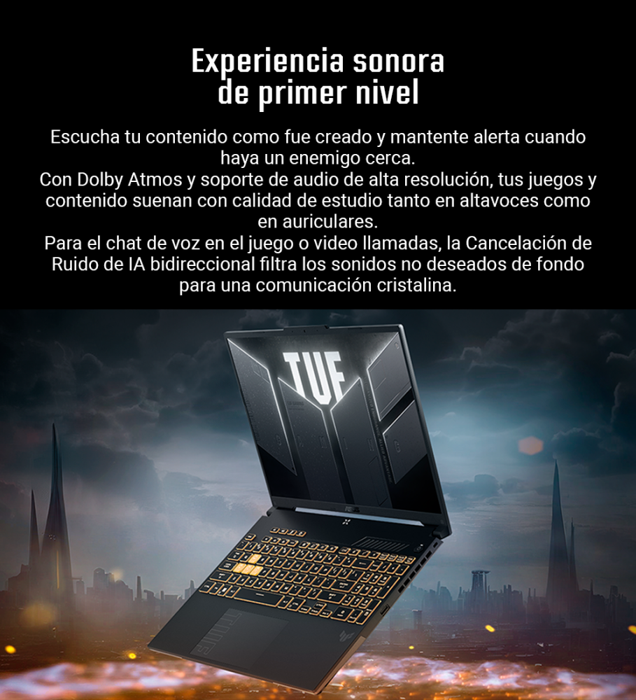 - Sistema de audio Dolby Atmos con certificación Hi-Res y micrófonos con cancelación de ruido AI