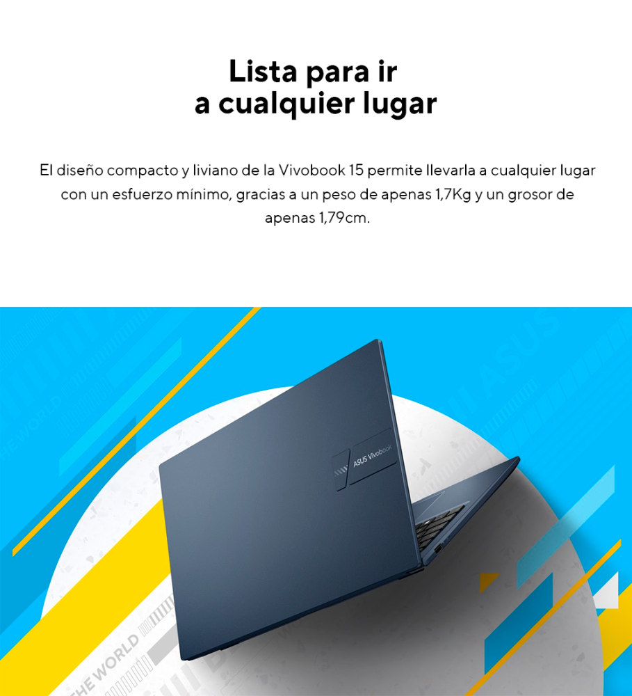 La Notebook ASUS VivoBook X1504VA-NJ742W es la elección perfecta para aquellos que buscan un rendimiento confiable y versatilidad en su día a día. Equipada con un potente procesador Intel Core i5-1235U de 10 núcleos y una frecuencia turbo de hasta 4.4 GHz, esta laptop asegura un rendimiento fluido para multitareas complejas. La pantalla LED de 15.6 pulgadas con resolución Full HD (1920x1080p) ofrece imágenes nítidas y vibrantes, ideal para disfrutar de contenido multimedia o realizar tareas de diseño gráfico. Con 8 GB de memoria RAM DDR4 y un rápido almacenamiento SSD de 512 GB, esta notebook garantiza un arranque rápido y una gestión eficaz de tus aplicaciones. Su diseño elegante en color Quiet Blue, junto con su teclado numérico integrado, proporciona comodidad al trabajar con hojas de cálculo o documentos extensos. Además, su sistema operativo Windows 11 Home ofrece una experiencia de usuario intuitiva y moderna. La conectividad avanzada, incluyendo Bluetooth 5.1 y Wi-Fi 5, asegura que estés siempre conectado. Las múltiples opciones de puertos, como USB Tipo-C y HDMI, facilitan la conexión de dispositivos externos. La ASUS VivoBook X1504VA es ideal tanto para estudiantes como para profesionales que buscan una herramienta confiable y eficiente para sus tareas diarias.