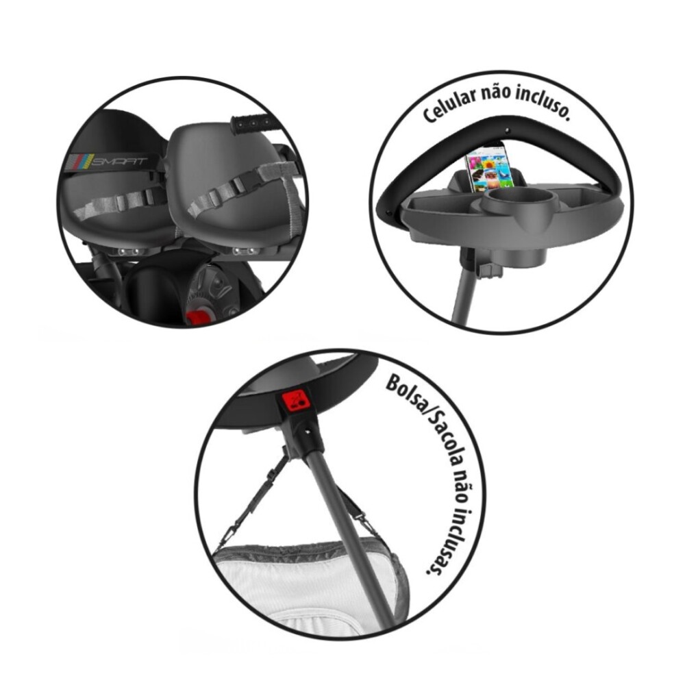 El triciclo Smart® de dos plazas crece con tu hijo, ofreciendo practicidad y comodidad. En modo cochecito , un adulto guía al niño usando el manillar dirigible, mientras que el compartimento de seguridad y el reposapiés garantizan su seguridad. Cuando el niño esté listo para pedalear solo , simplemente bloquea el mecanismo de rueda libre, retira el manillar, el compartimento y el reposapiés, transformándolo en un triciclo convencional para mayor diversión.